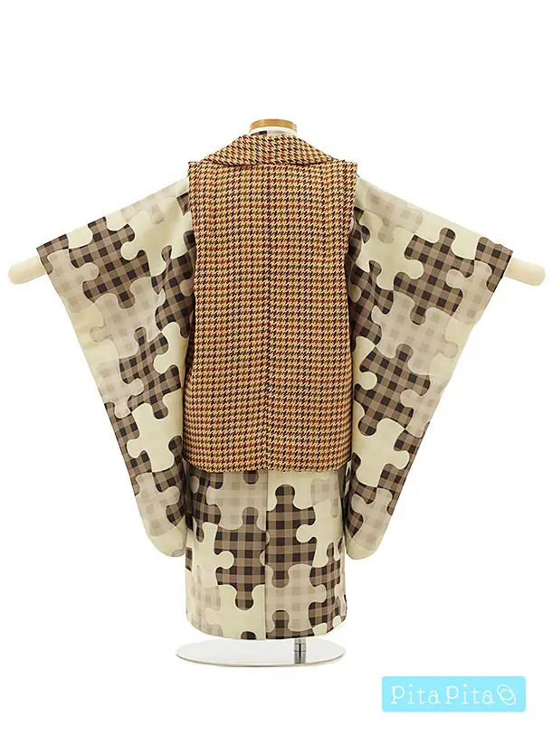 七五三レンタル(3歳男児被布)O005 【pitapita】 puzzle-2茶