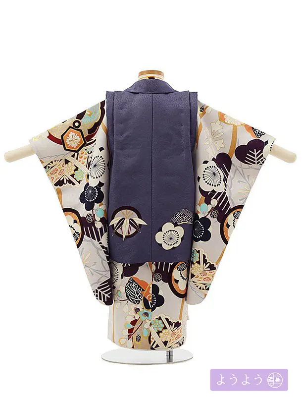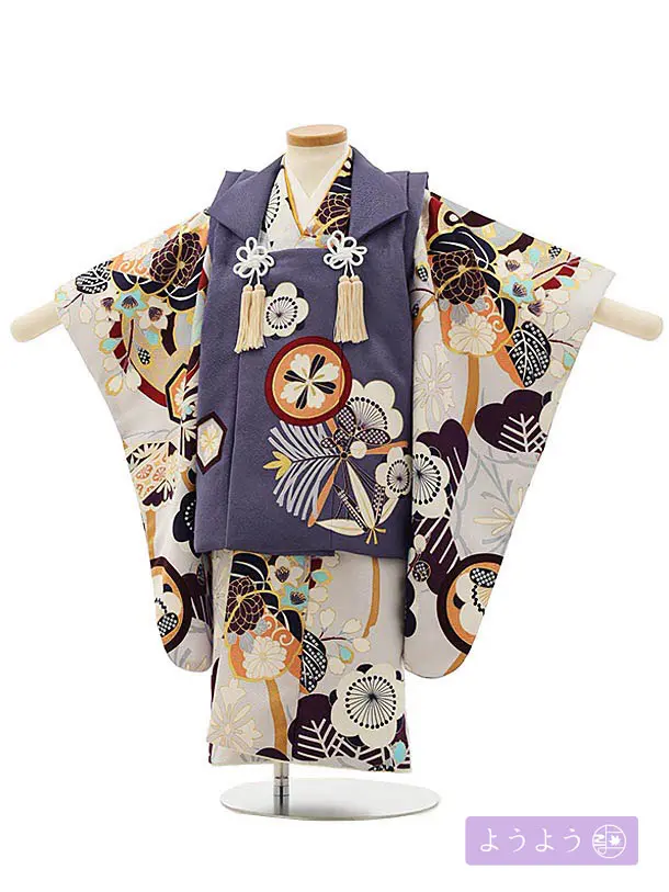 七五三(3歳被布)O014 【ようよう】 丸紋に松竹梅の桐ブルーグレー