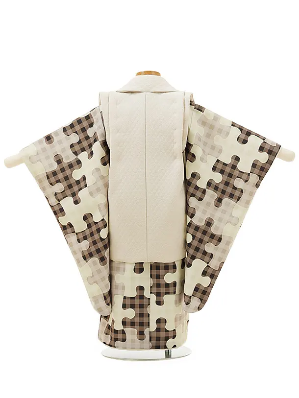 七五三(3歳男児被布)O033【pitapita】 puzzle ベージュx茶