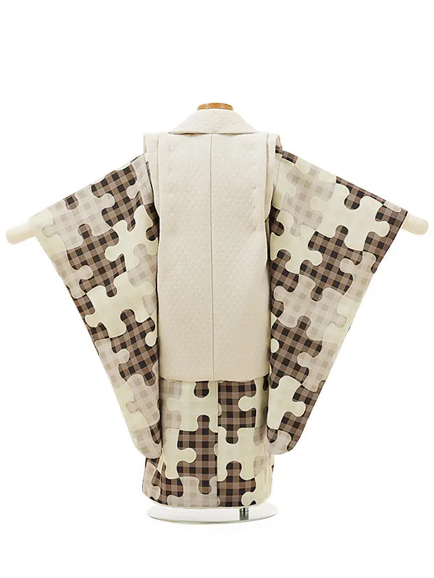 七五三(2歳男児被布)O053 【pitapita】 puzzle ベージュx茶