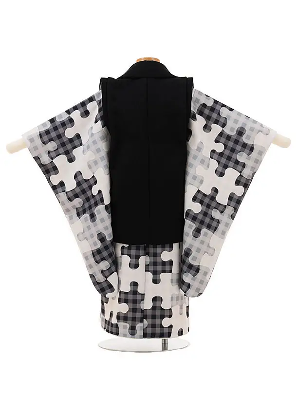 七五三(2歳男児被布)O054 【pitapita】 puzzle 黒x黒