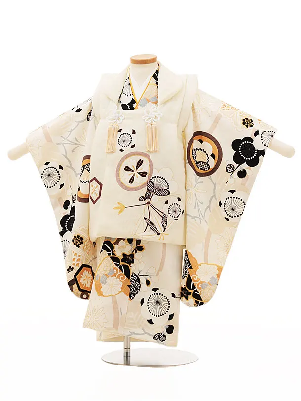 七五三(3歳男児被布)O085 【ようよう】 丸紋に松竹梅の桐クリーム×クリーム