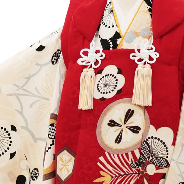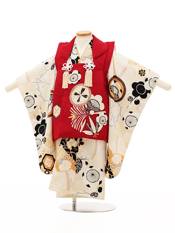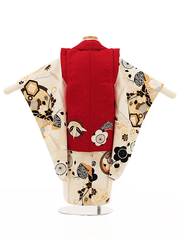 七五三(3歳男児被布)O086 【ようよう】 丸紋に松竹梅の桐赤×クリーム