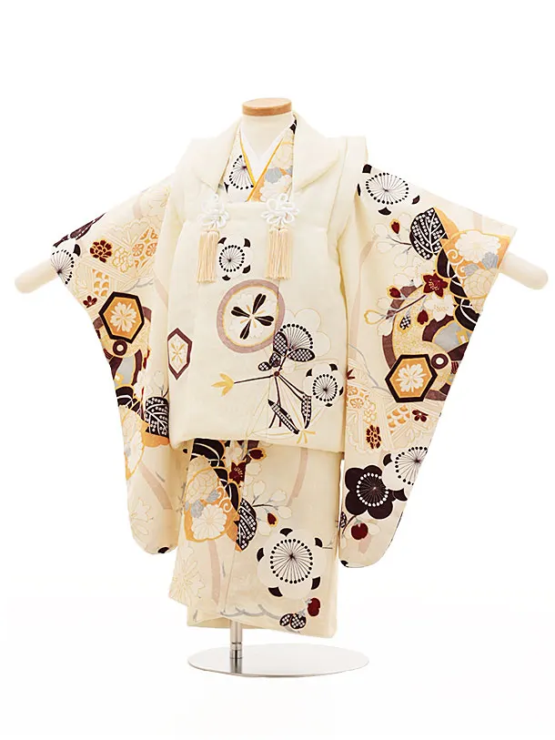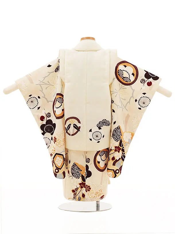 七五三(3歳)O088 【ようよう】 丸紋に松竹梅の桐クリーム×ベージュ赤