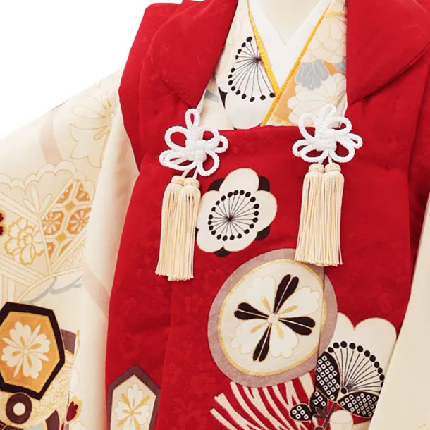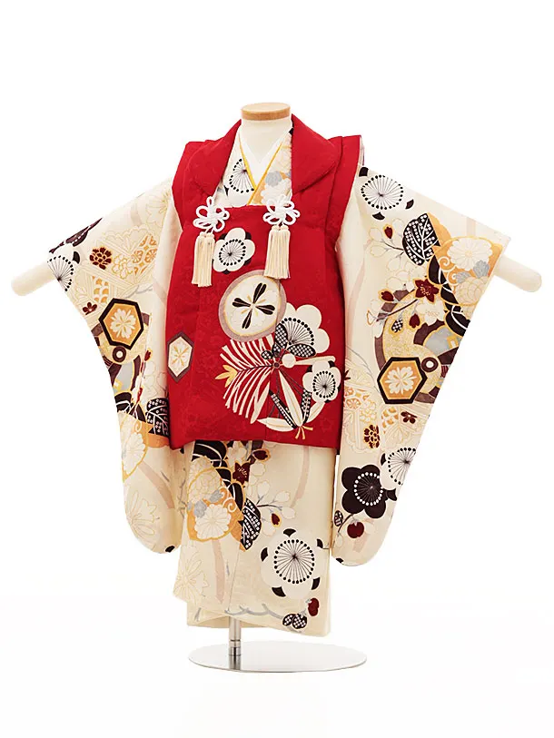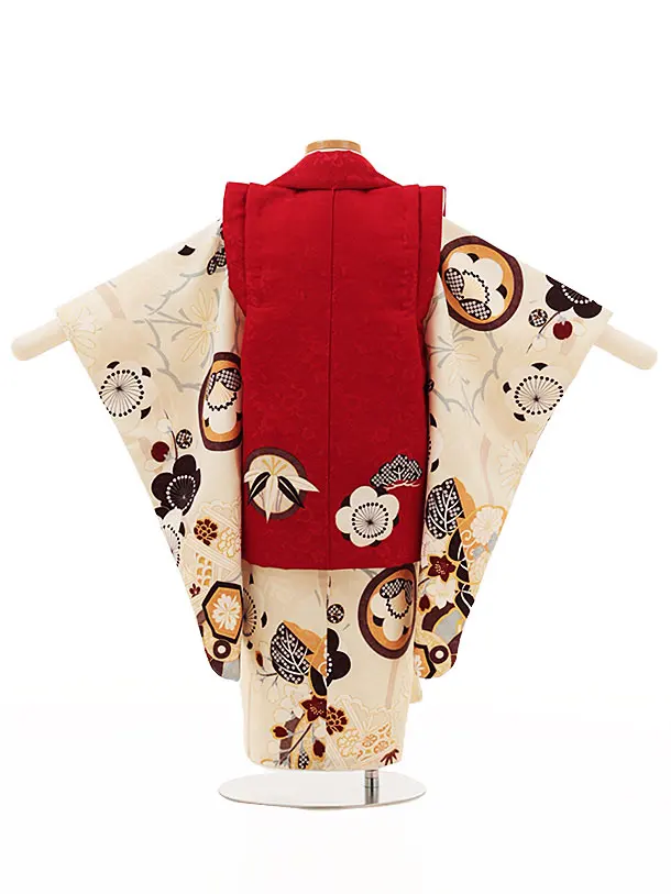 七五三(3歳男児被布)O089 【ようよう】 丸紋に松竹梅の桐赤×ベージュ赤