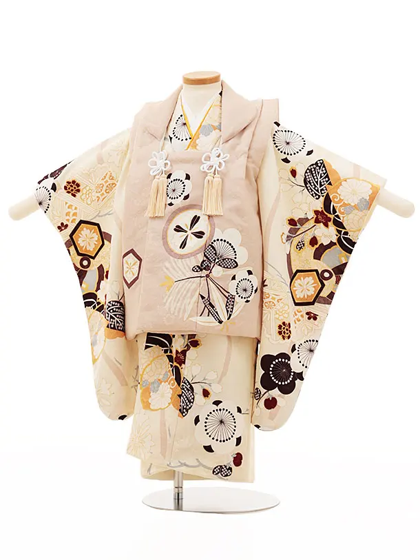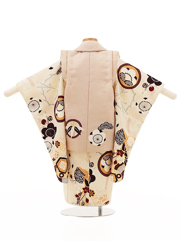 七五三(3歳)O090【ようよう】丸紋に松竹梅の桐ベージュ×ベージュ赤