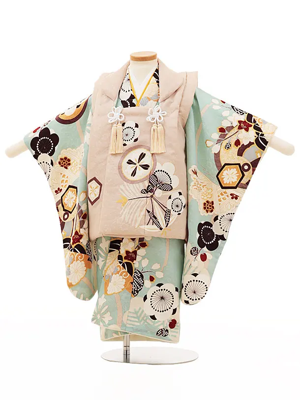 七五三(3歳男児被布)O096 【ようよう】 丸紋に松竹梅の桐ベージュ×水色