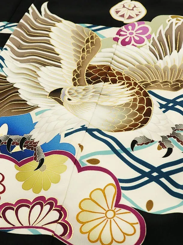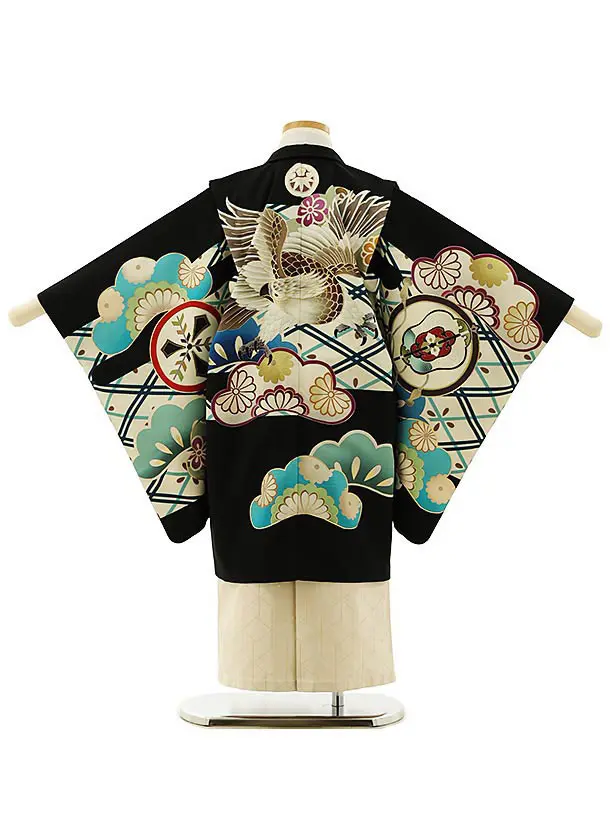 かんたん七五三(5歳男袴)O097 【ようよう】黒地鷹松×ベージュ袴
