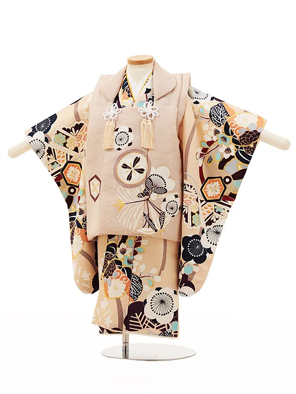 七五三(3歳男児)O101【ようよう】丸紋に松竹梅の桐ベージュ×ベージュ