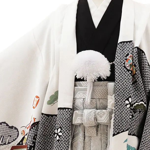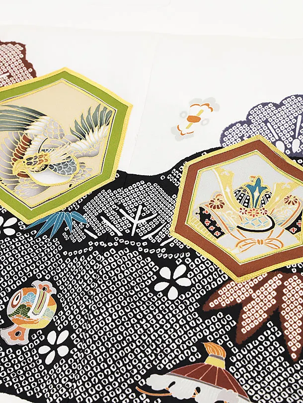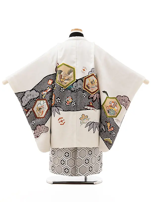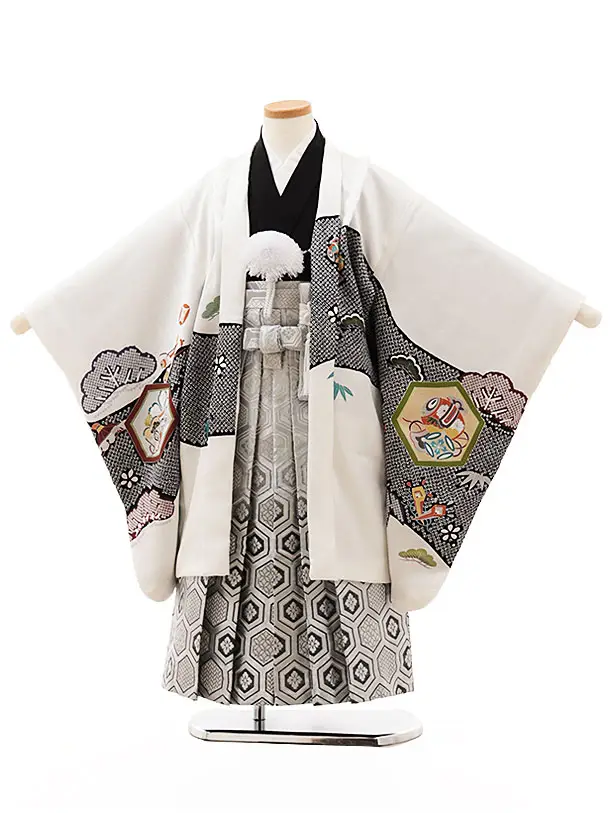七五三(5歳男袴)O118 (正絹)【ようよう】白地亀甲吉祥文様×シルバー亀甲