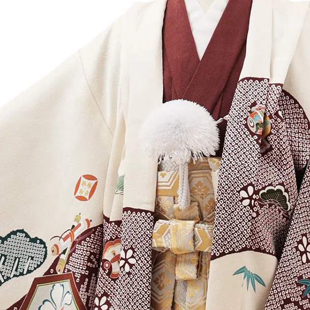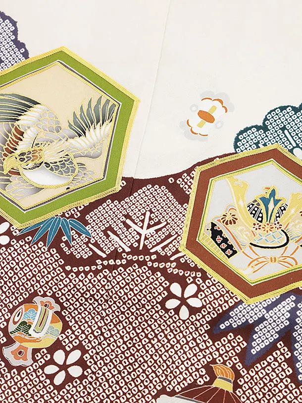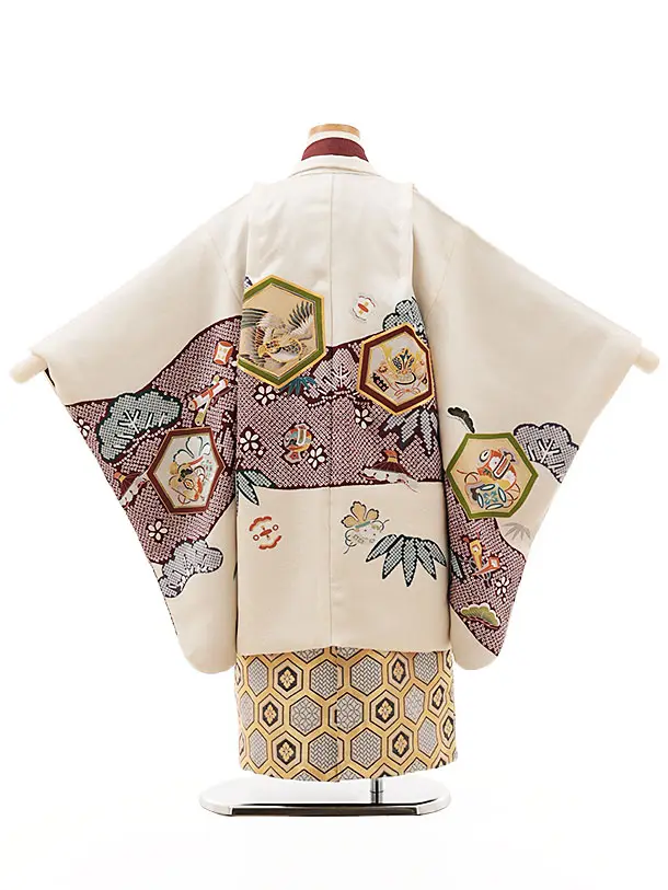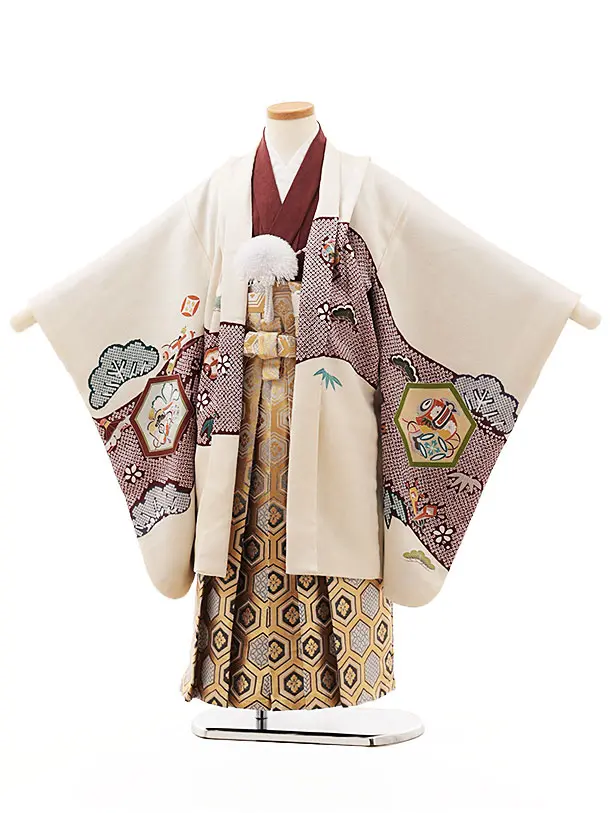 七五三(5歳)O119 (正絹)【ようよう】アイボリー亀甲吉祥文様×亀甲袴