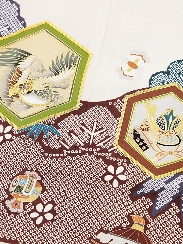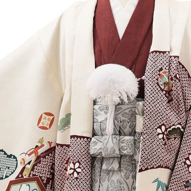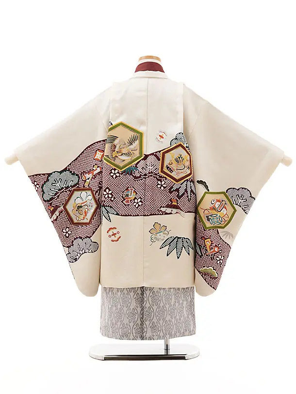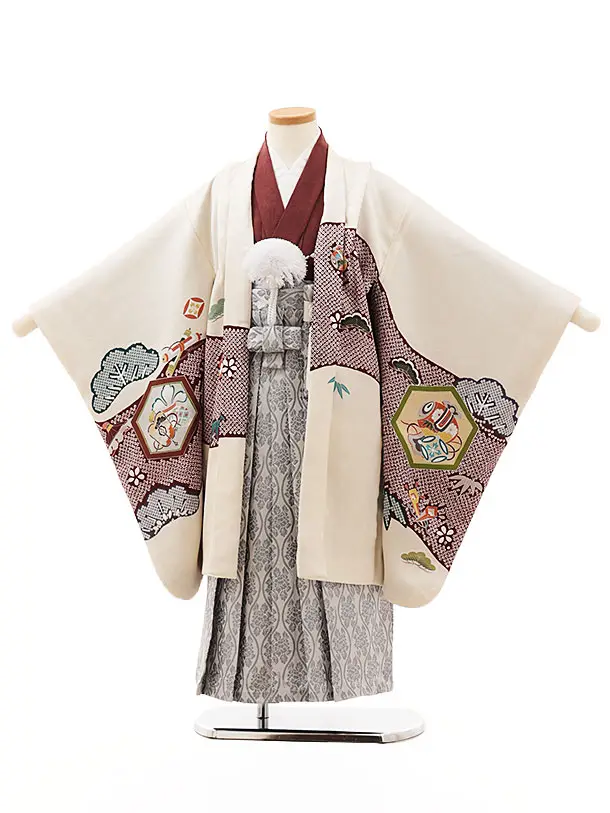 七五三(5歳男袴)O120 (正絹)【ようよう】アイボリー亀甲吉祥文様×グレー