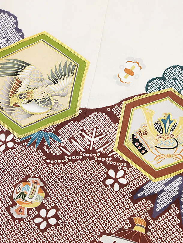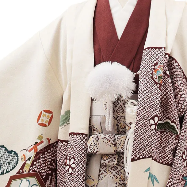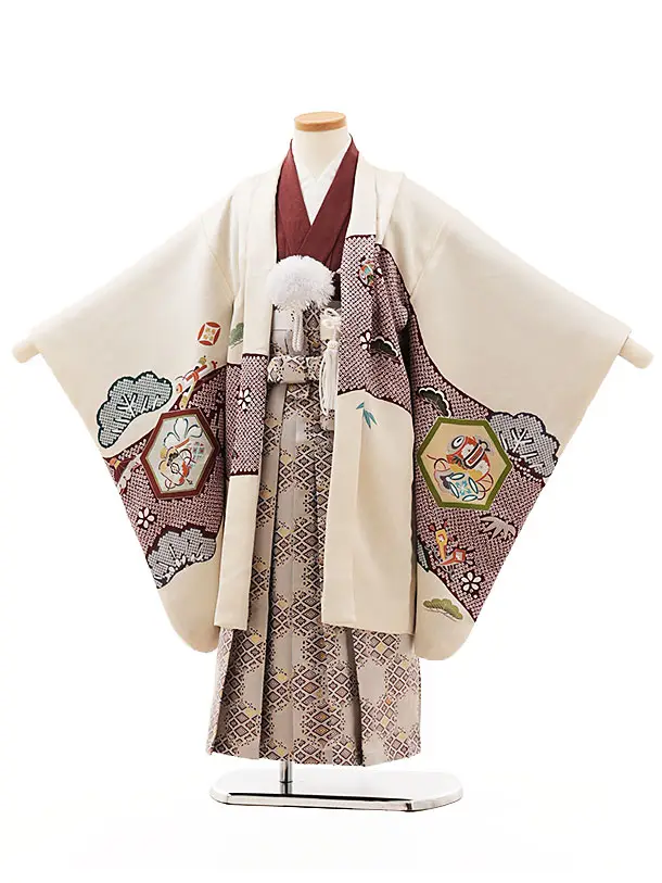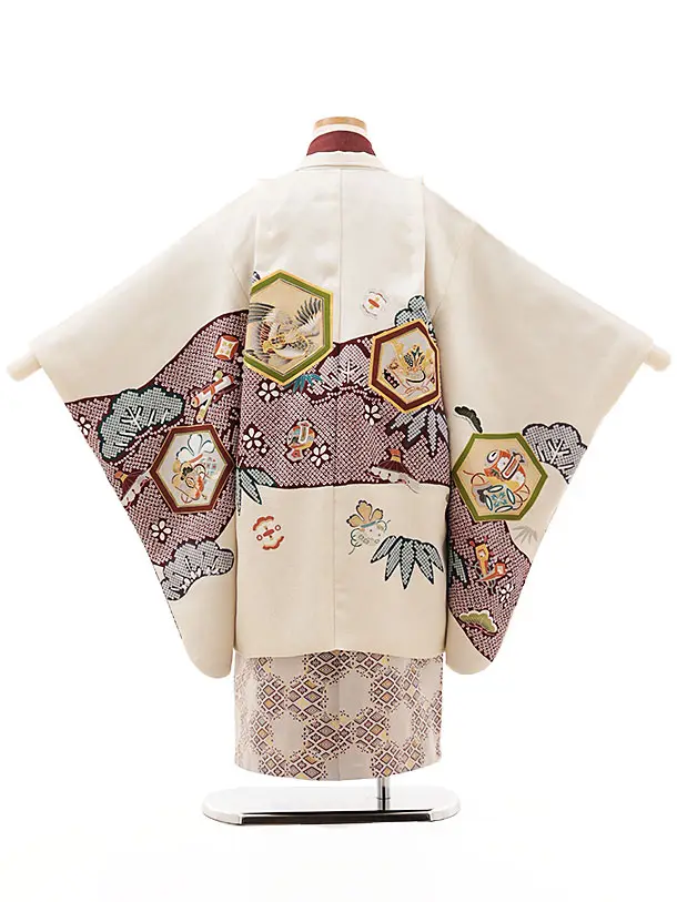 七五三(5歳)O121 (正絹)【ようよう】アイボリー亀甲吉祥文様×白ボルドー