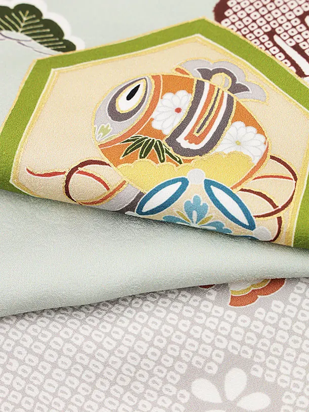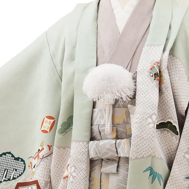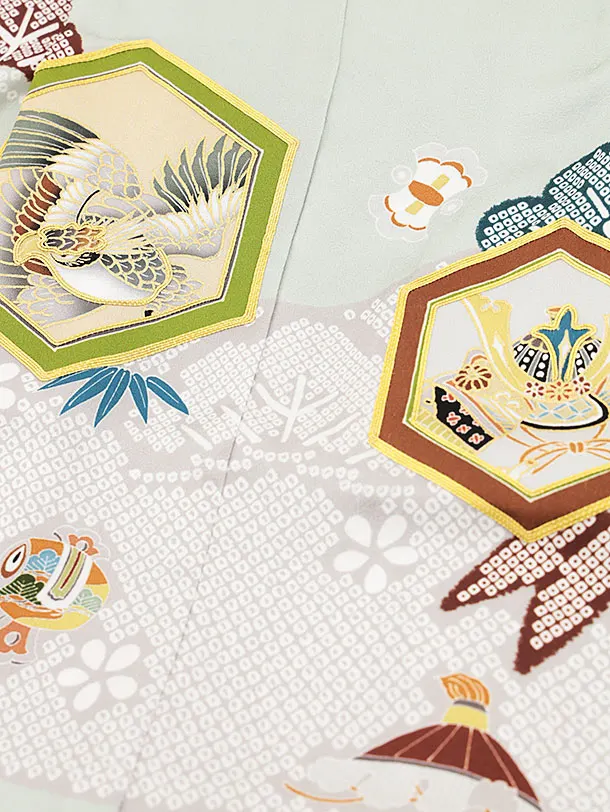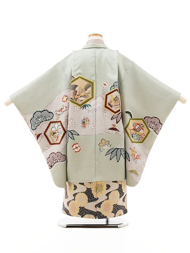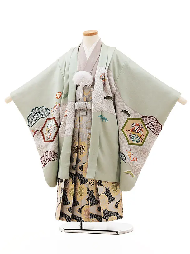 七五三(5歳男袴)O122 (正絹)【ようよう】ヒワ色亀甲吉祥文様×グレー黒