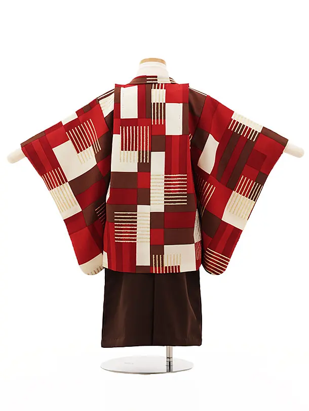 七五三(3歳男袴)O145【ようよう】geometric 赤×茶