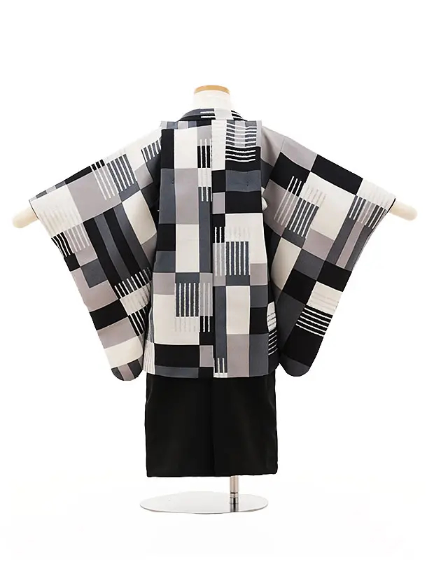 かんたん七五三(3.4歳男袴)O159【ようよう】geometric グレー×黒