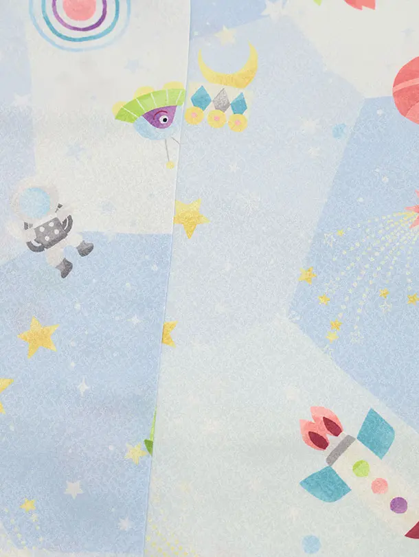 七五三(3歳男児被布)O175【pitapita】宇宙 水色 汽車ポッポ