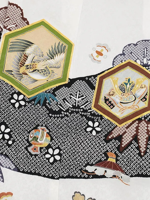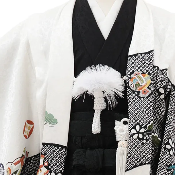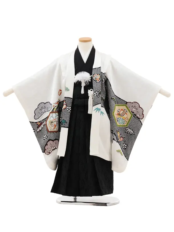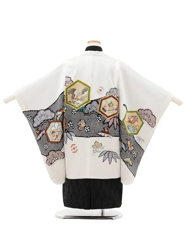 七五三(5歳男袴)O212【正絹】【ようよう】白地亀甲 吉祥文様×黒