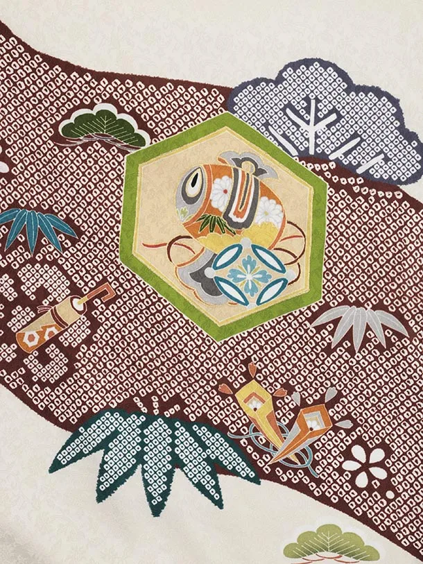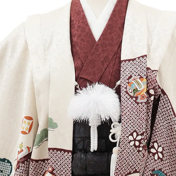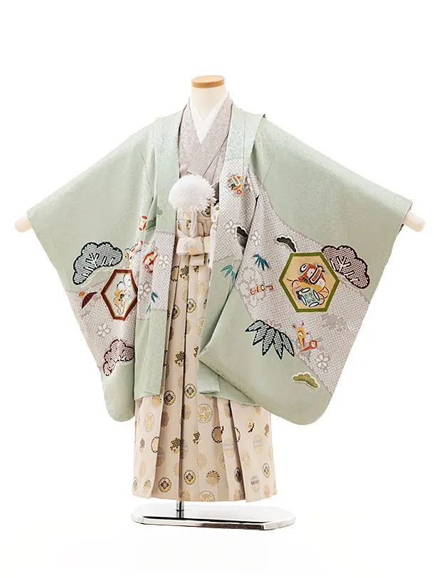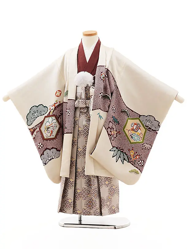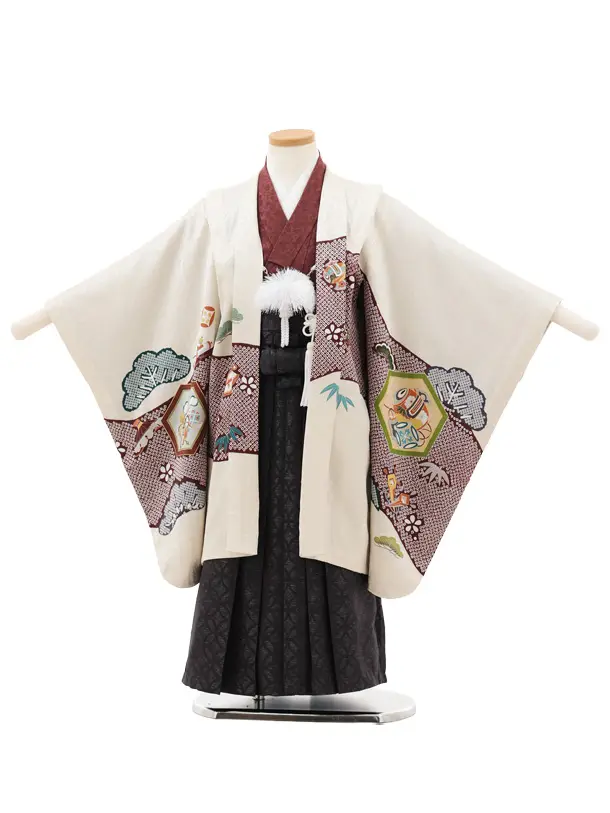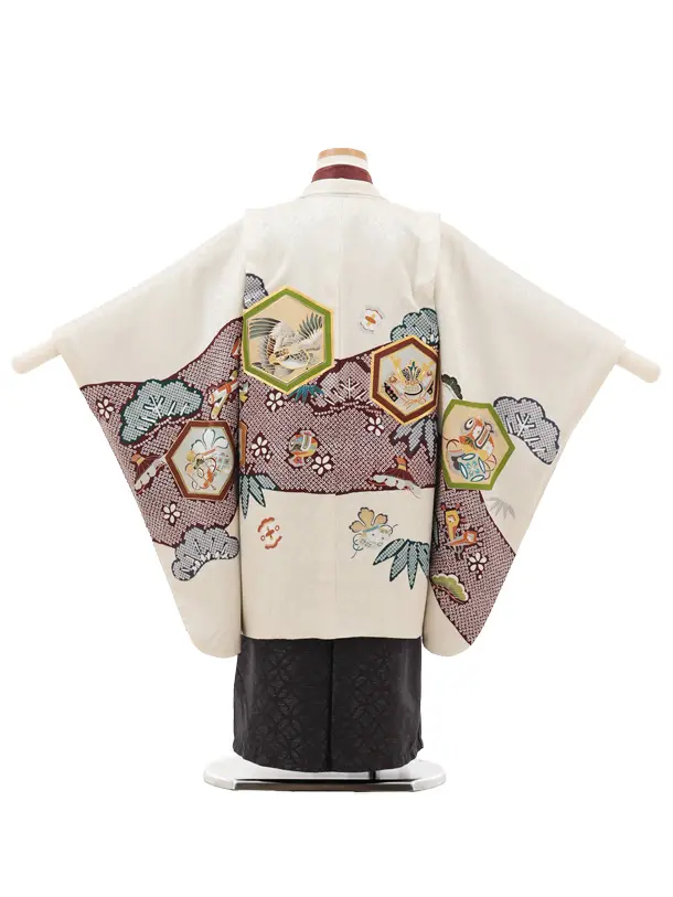 七五三(5歳男袴)O215【正絹】【ようよう】アイボリー亀甲 吉祥文様×紺