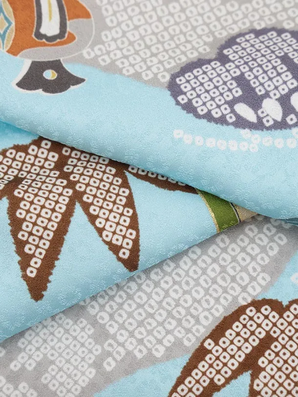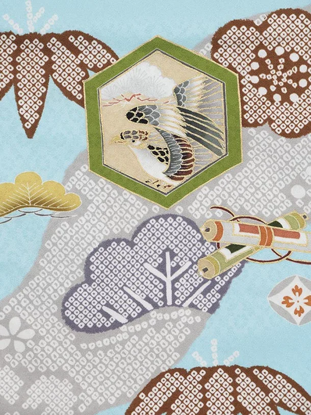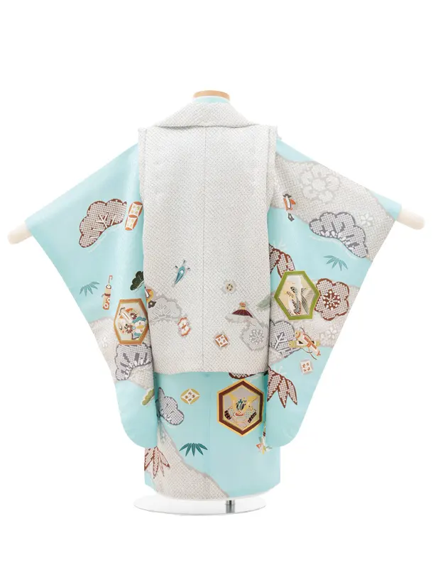 七五三(3歳)O218【正絹】【ようよう】薄グレー疋田柄 刺繍鷹×水色 吉祥文様