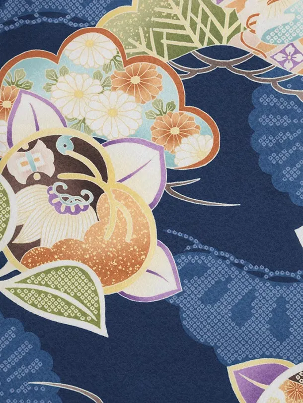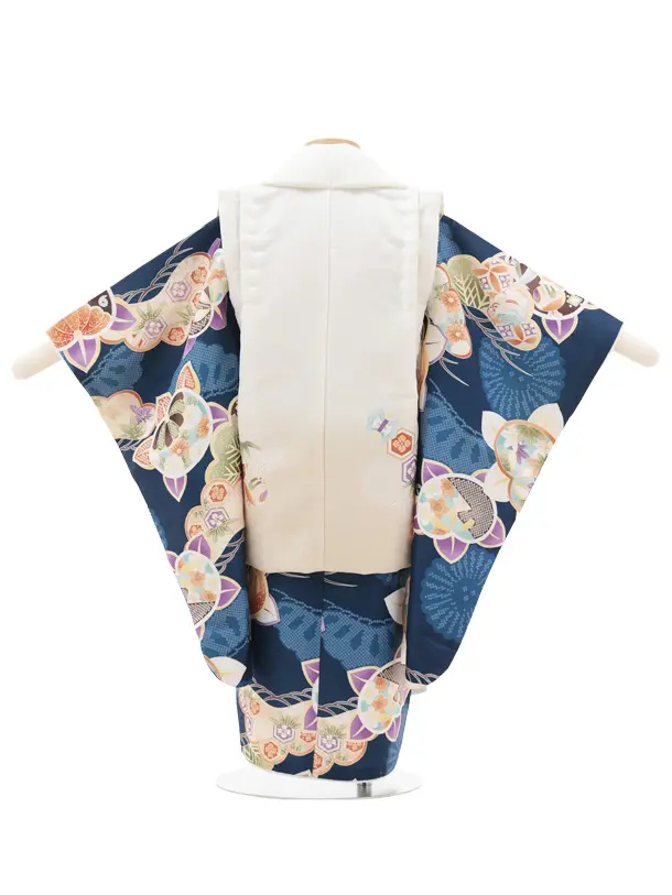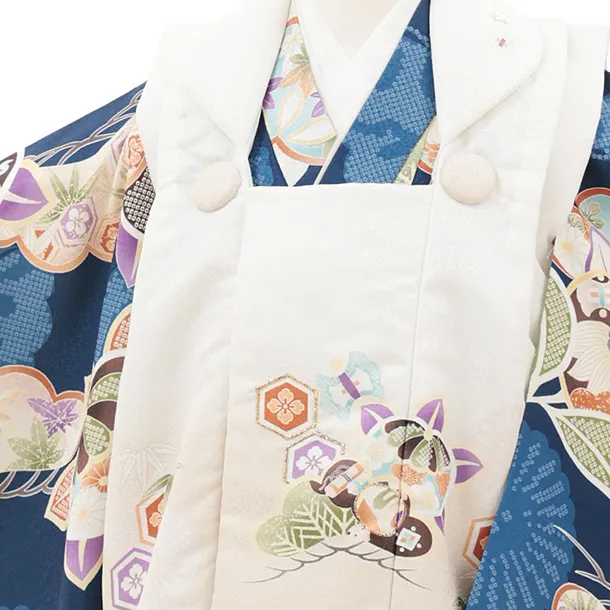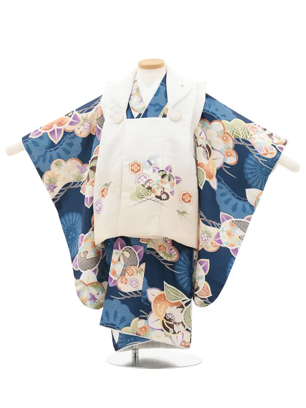 七五三レンタル(3歳男児被布)O222 オフ白ぼかし×紺 松橘