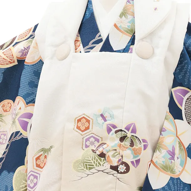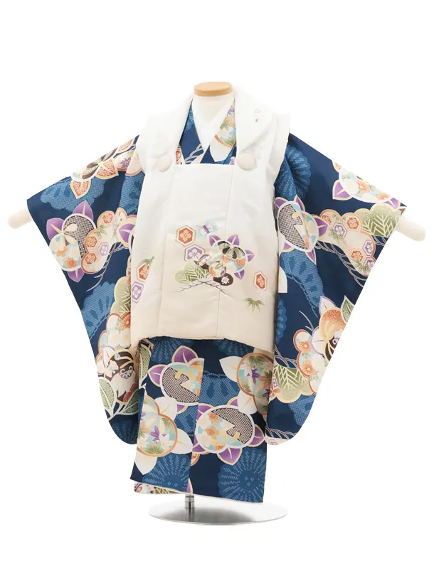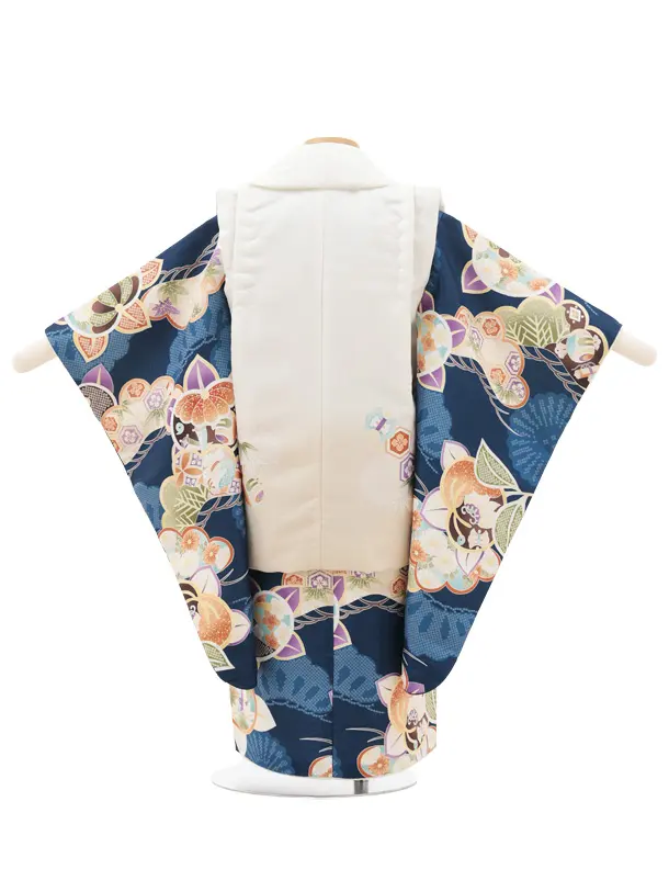 七五三レンタル(3歳男児被布)O224 オフ白ぼかし×紺 松橘