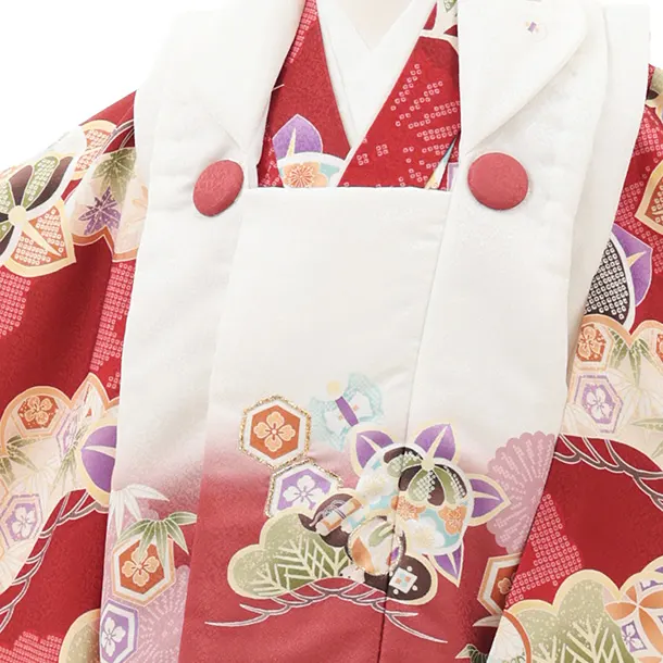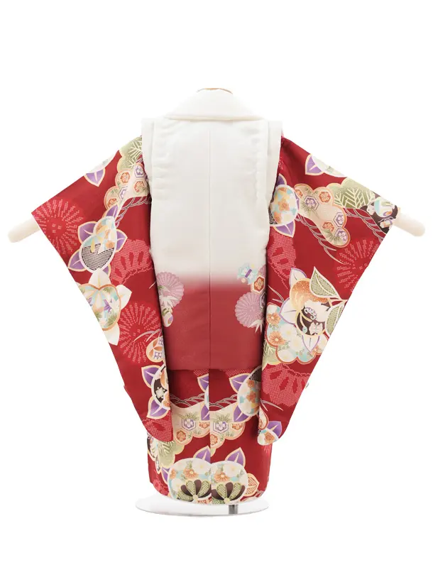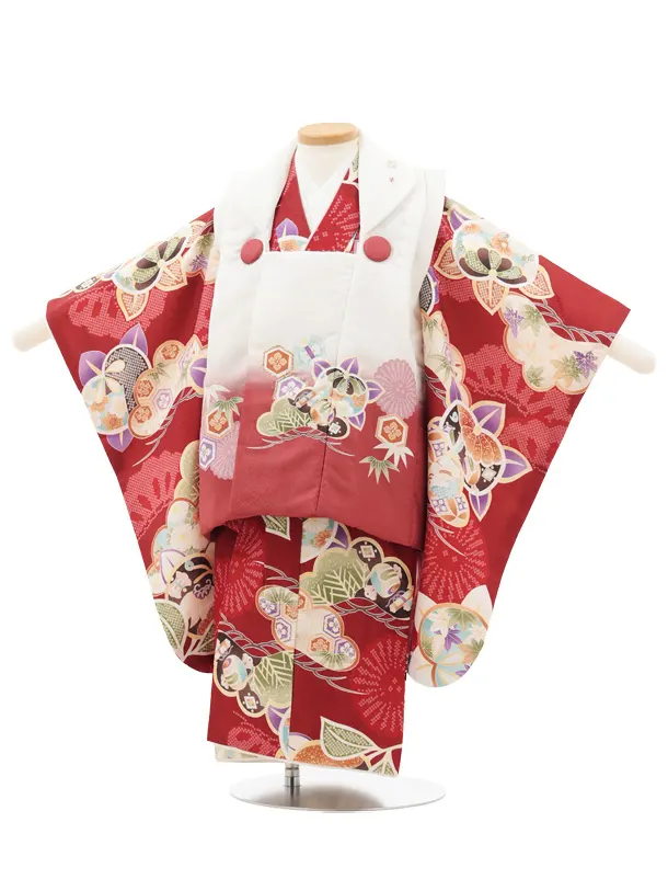 七五三レンタル(3歳男児被布)O227 オフ白赤ぼかし×赤 松橘