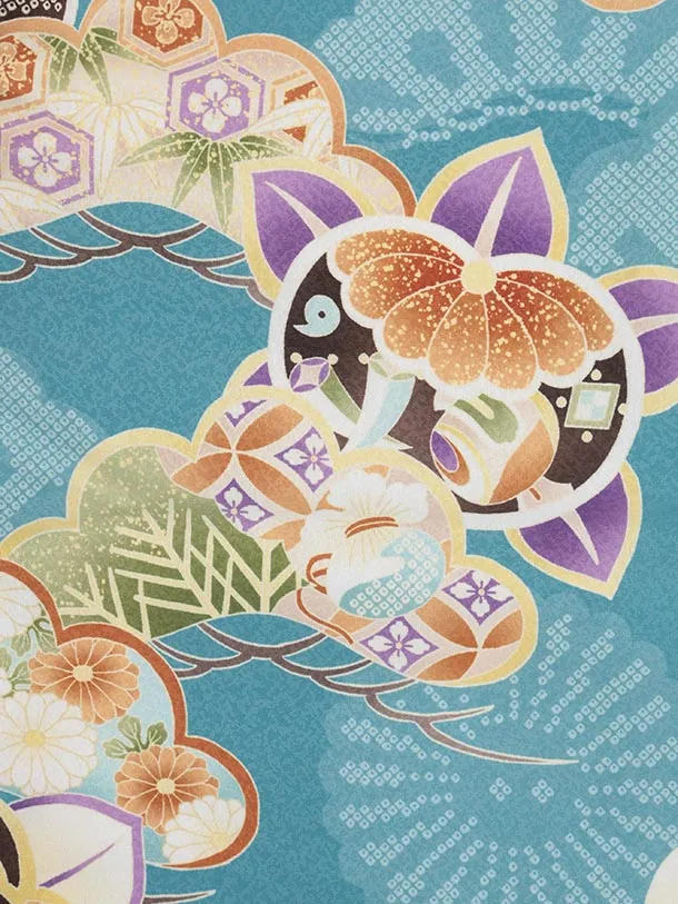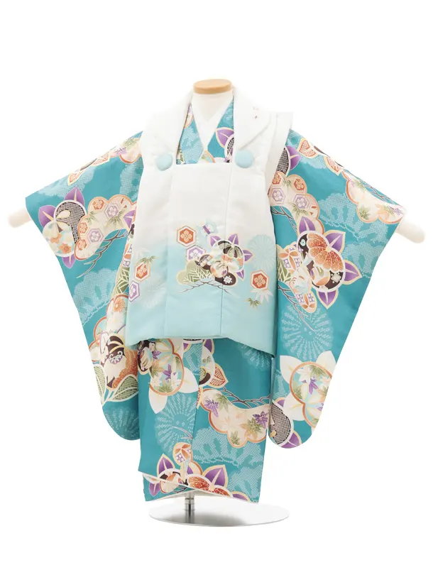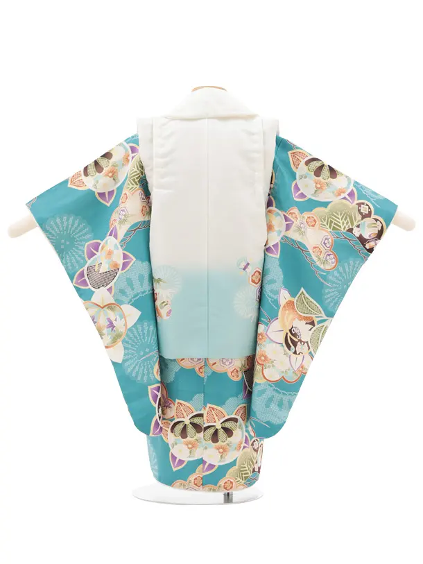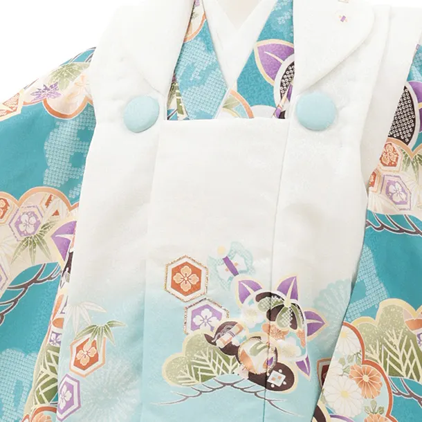 七五三レンタル(3歳男児被布)O228 オフ白 水色ぼかし×ブルーグリーン松橘