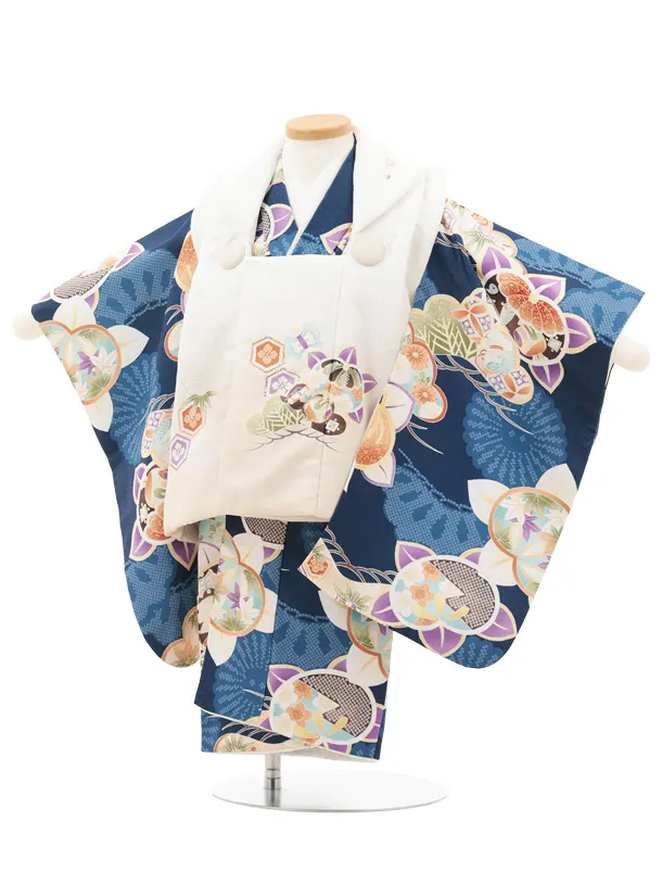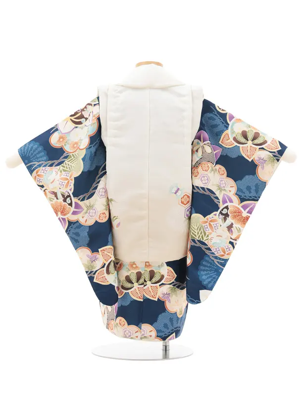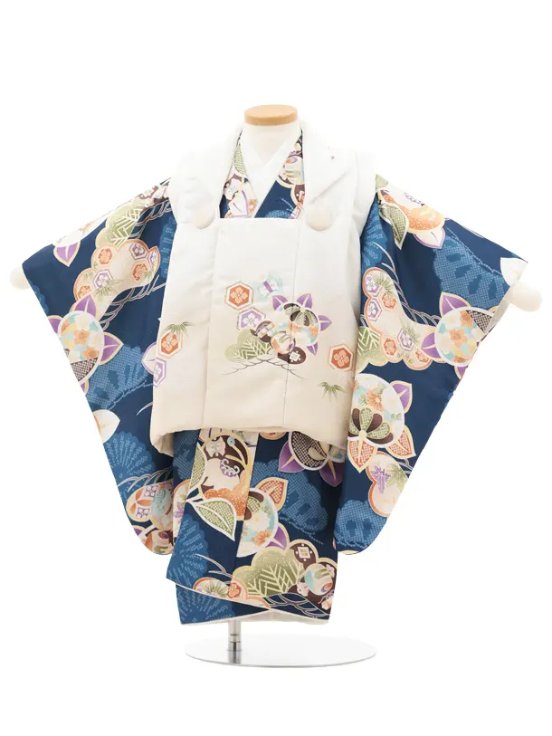 七五三レンタル(2歳男児被布)O238 オフ白ぼかし×紺 松橘