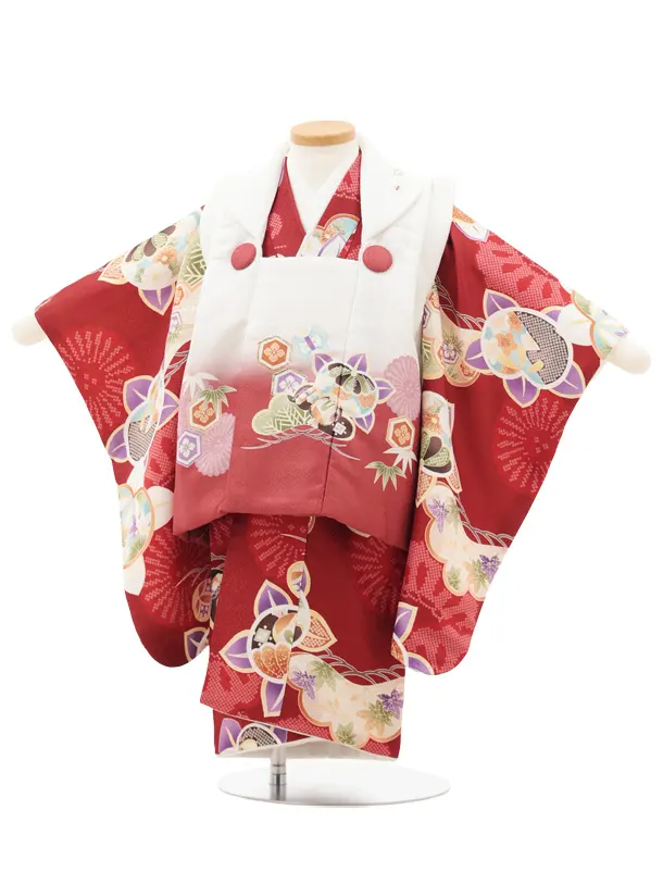 七五三レンタル(2歳男児被布)O241 オフ白赤ぼかし×赤 松橘
