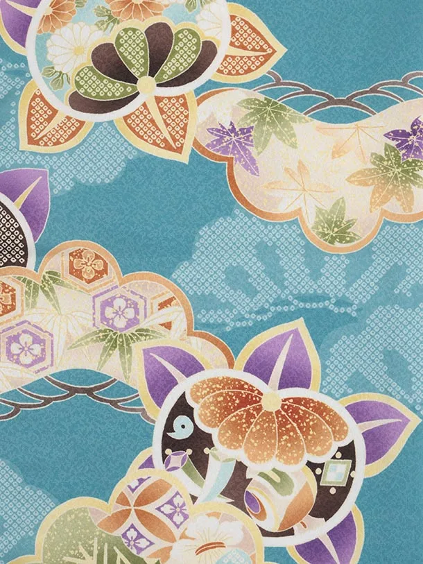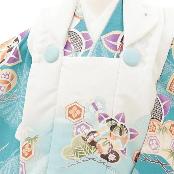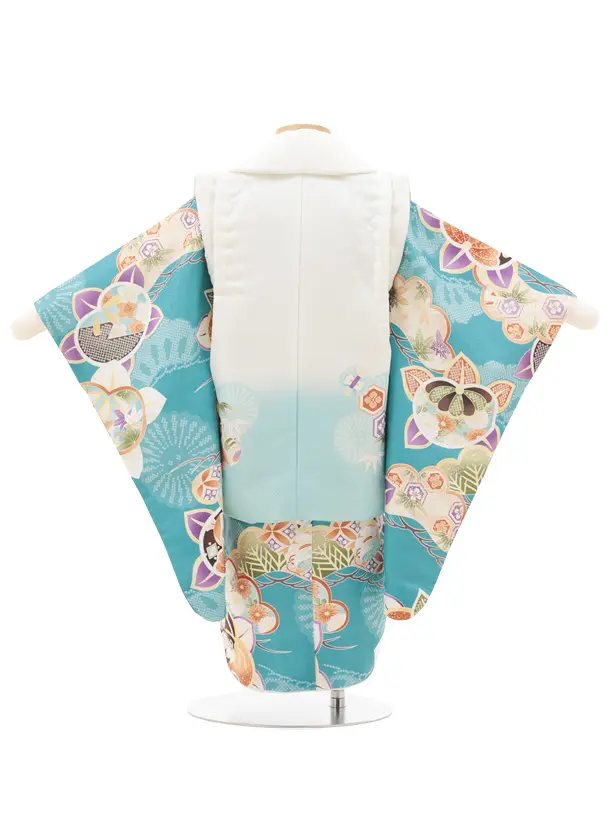 七五三レンタル(2歳男児被布)O244 オフ白 水色ぼかし×ブルーグリーン 松橘