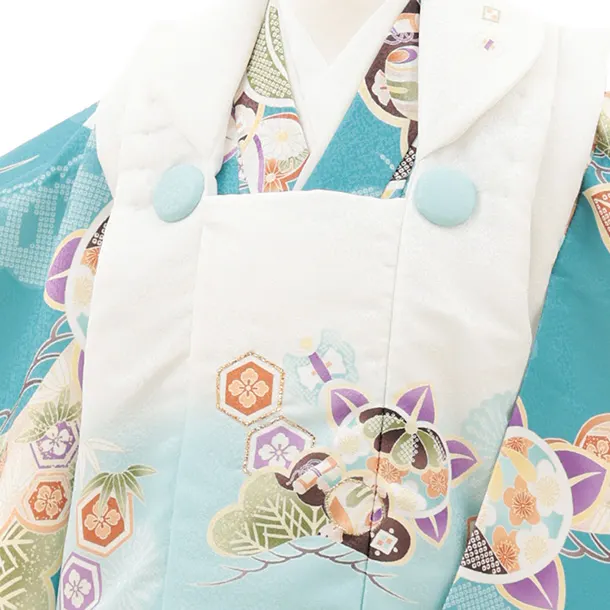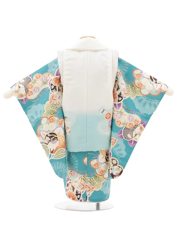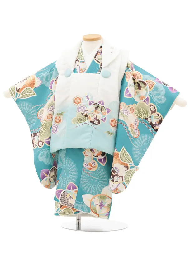 七五三レンタル(2歳男児被布)O246 オフ白 水色ぼかし×ブルーグリーン 松橘