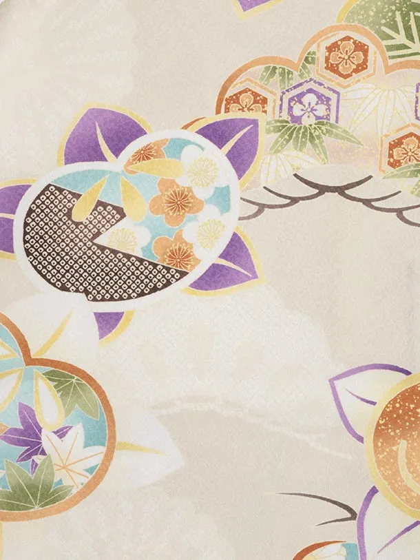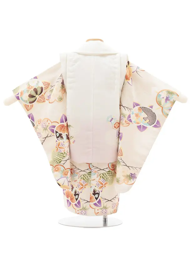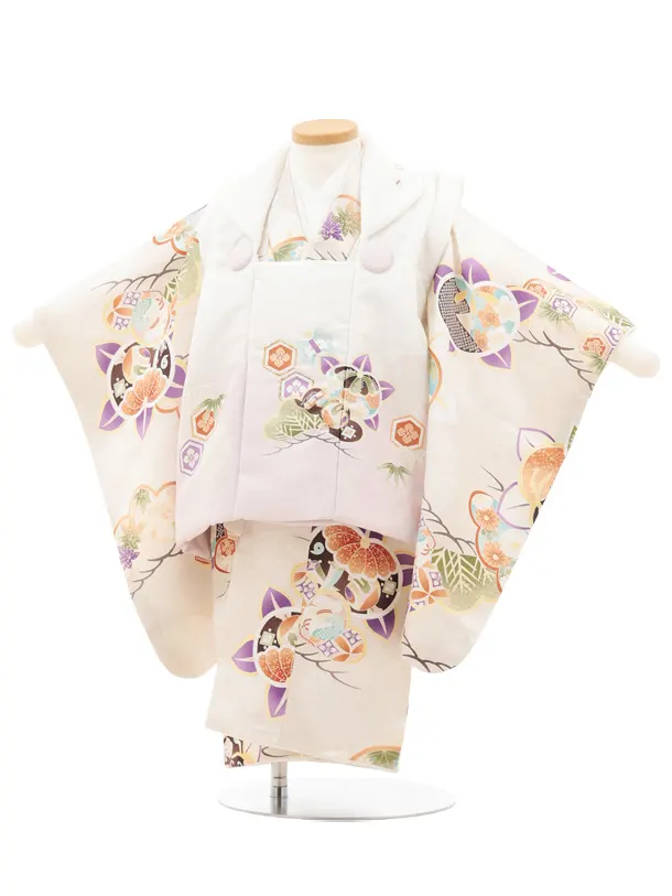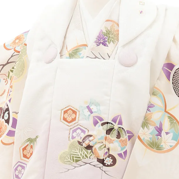 七五三レンタル(2歳男児被布)O252 オフ白 薄パープルぼかし×ベージュ松橘