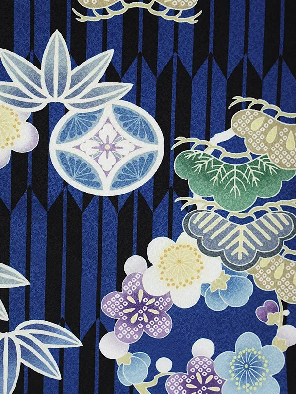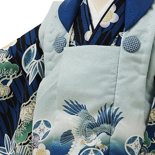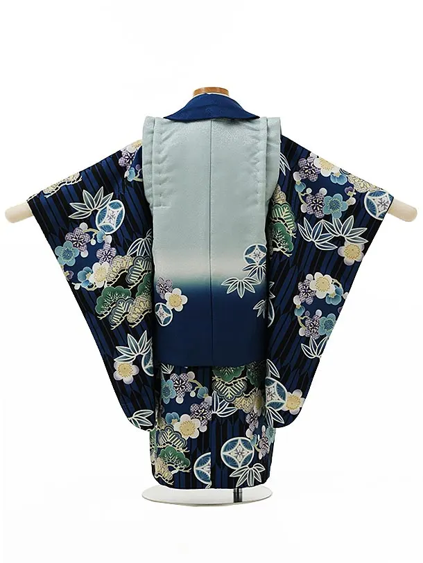 七五三(3歳男児被布)W003 水色ぼかし鷹×ブルー矢柄松竹梅