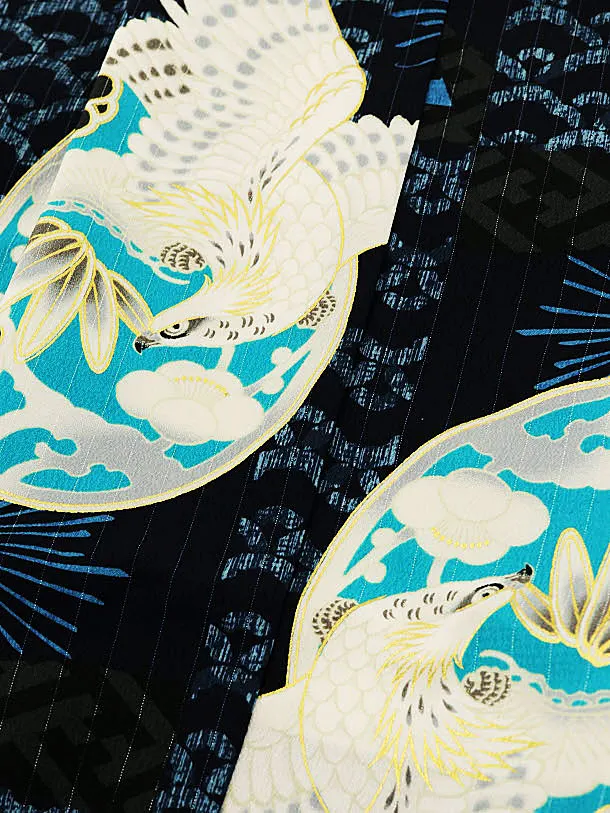 かんたん七五三レンタル(3歳男袴)W008JAPANSTYLE紺地青海波丸紋鷹