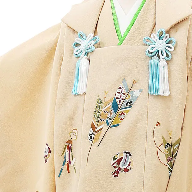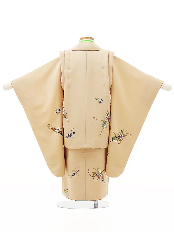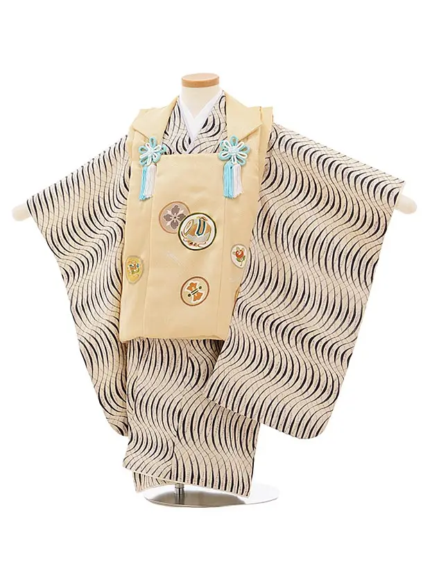 七五三レンタル(3歳男児被布)W015【正絹】ベージュ吉祥文様