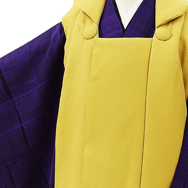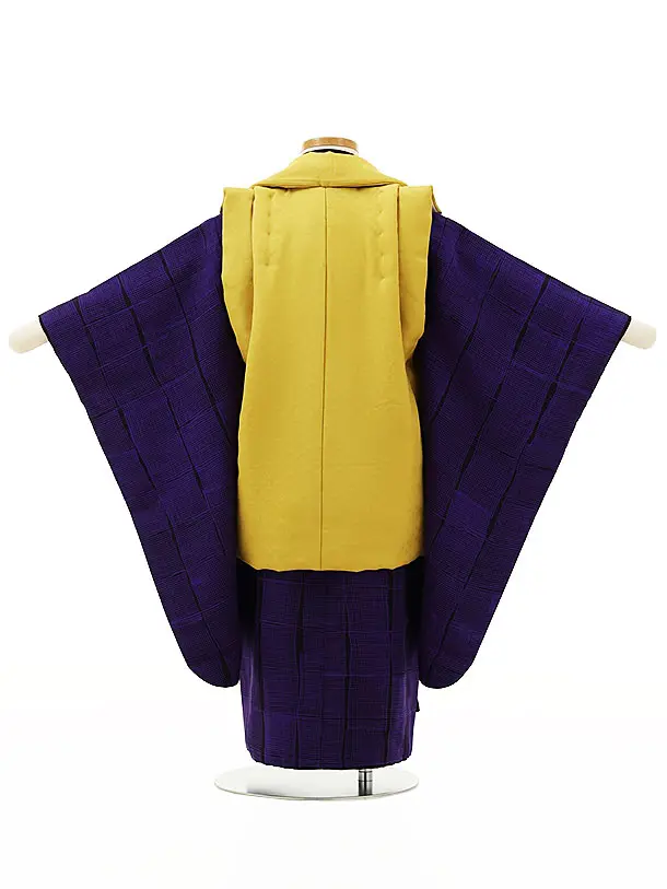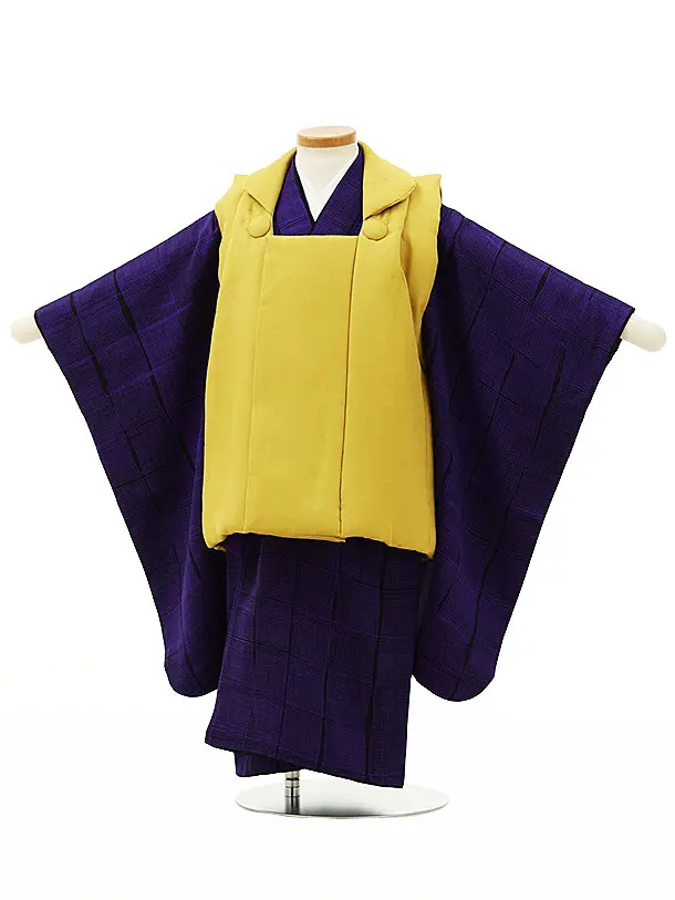 七五三レンタル(3歳男児被布)W018【正絹】からし色x紫変わり格子