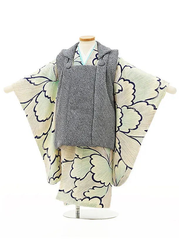 七五三レンタル(3歳男児被布)W023【正絹】紺絞りxベージュ大花