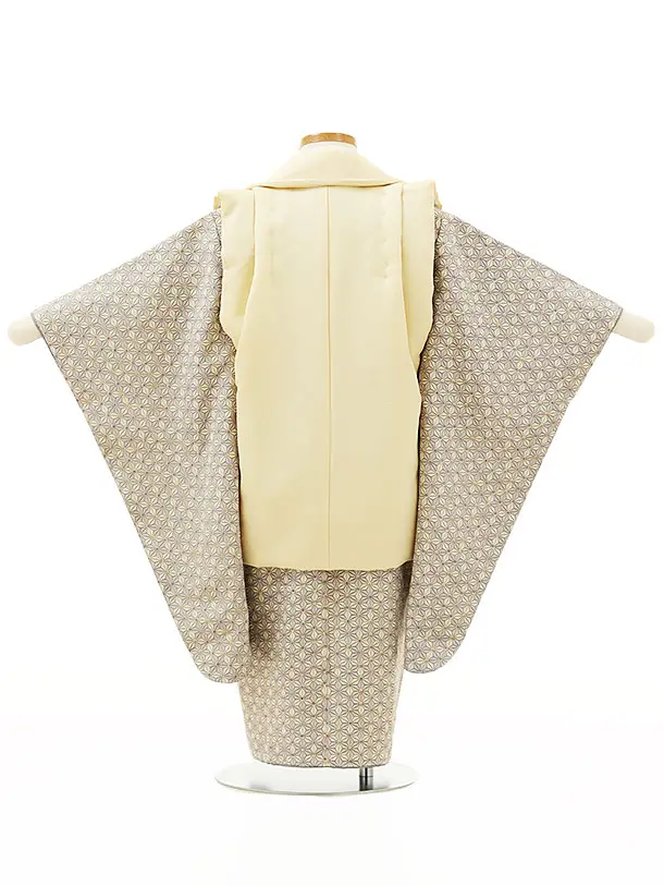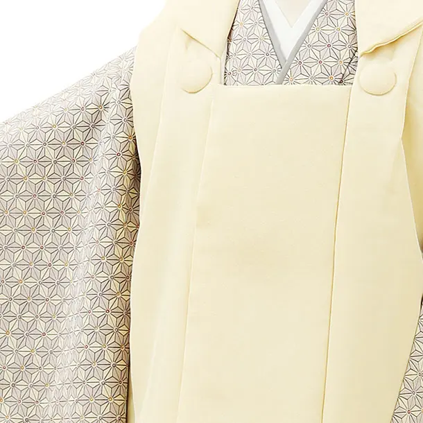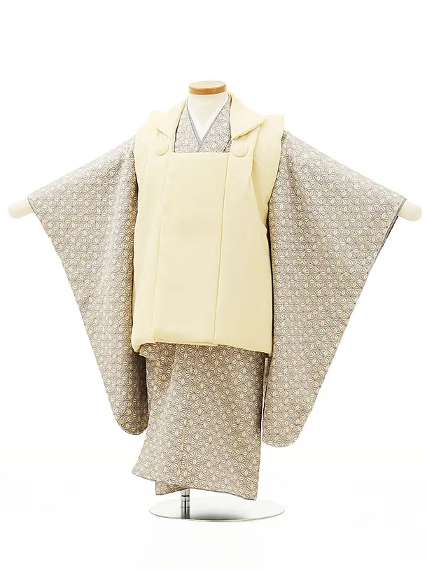 七五三(3歳男児被布)W026【正絹】クリーム色xうすパープルグレー麻の葉