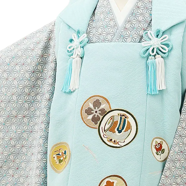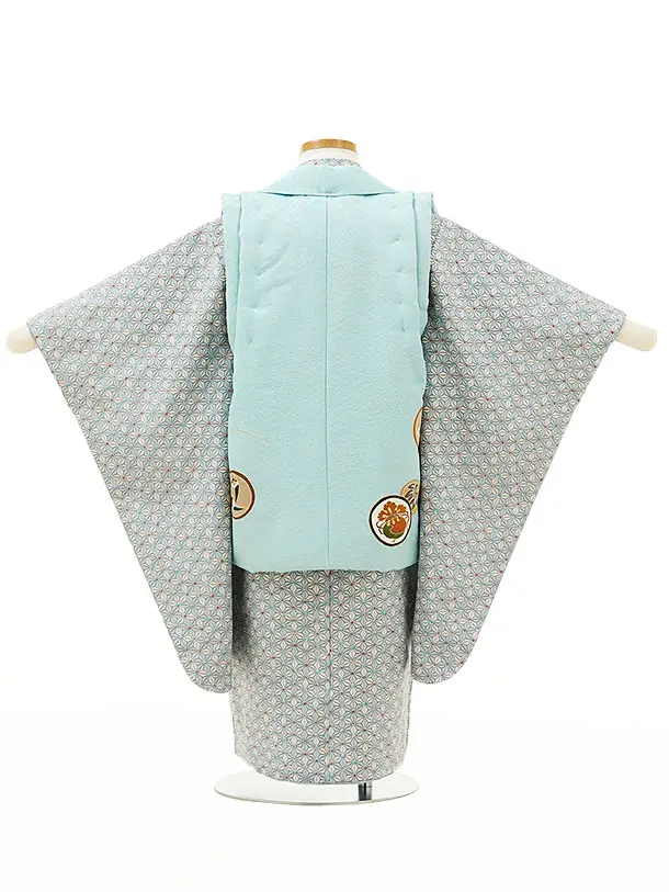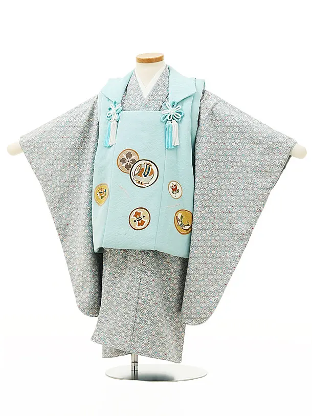 七五三レンタル(3歳男児被布)W029【正絹】水色丸紋x水色麻の葉