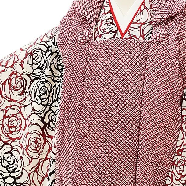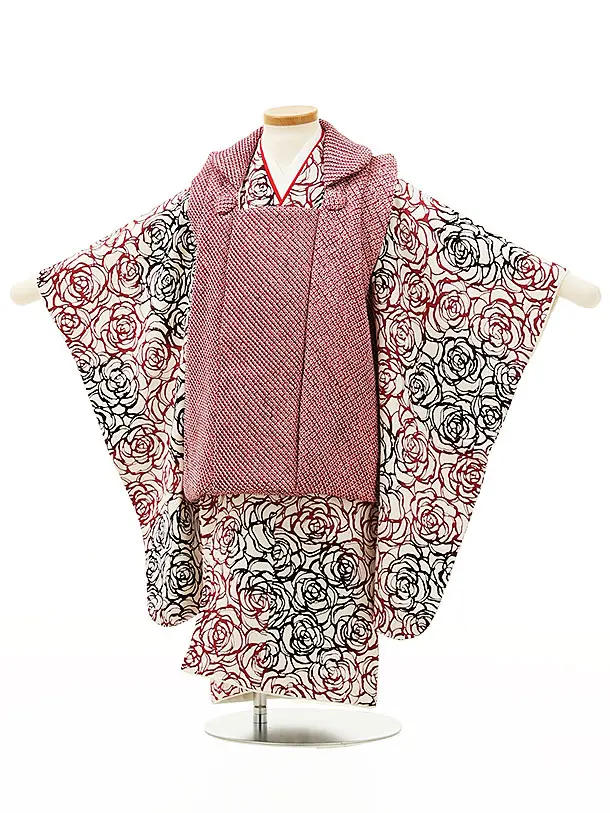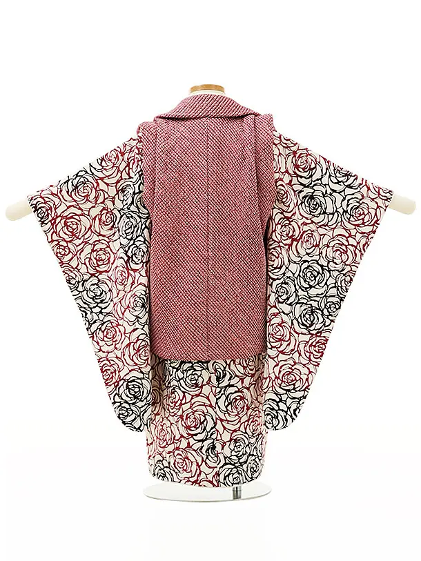 七五三レンタル(3歳男児被布)W030【正絹】ボルドー絞りx白地バラ