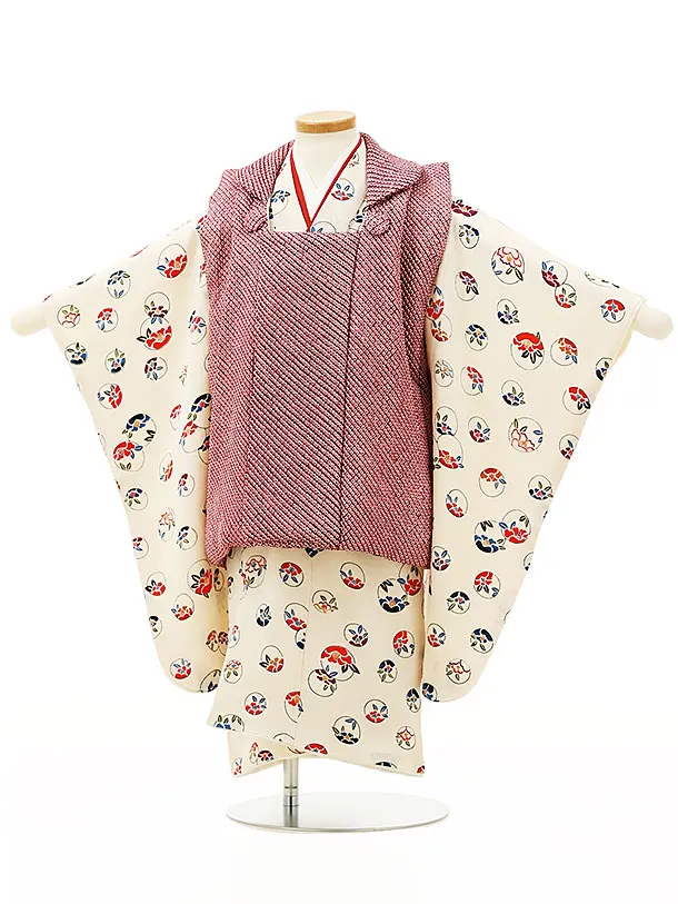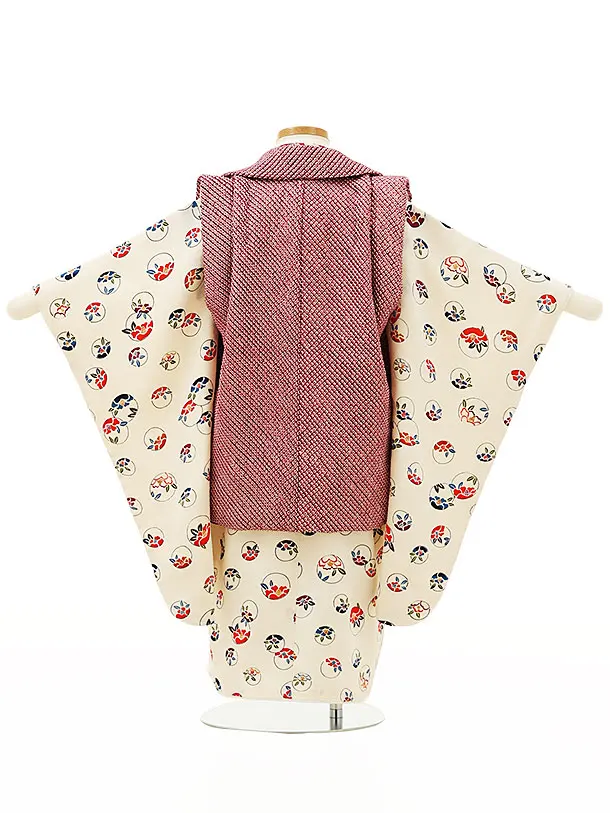七五三レンタル(3歳男児被布)W031【正絹】ボルドー絞りxアイボリー丸に椿