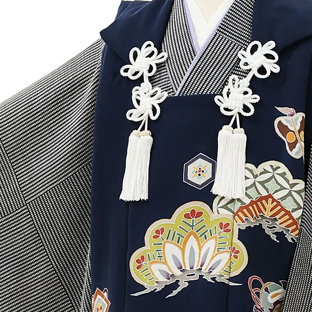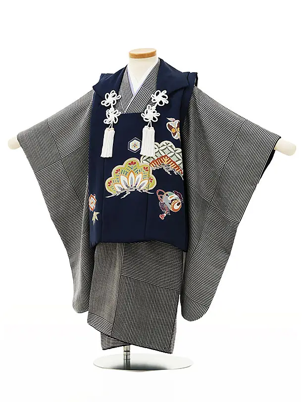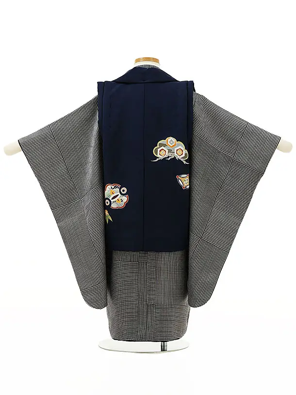 七五三レンタル(3歳男児被布)W037【正絹】紺松小槌x黒大格子