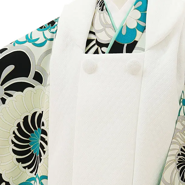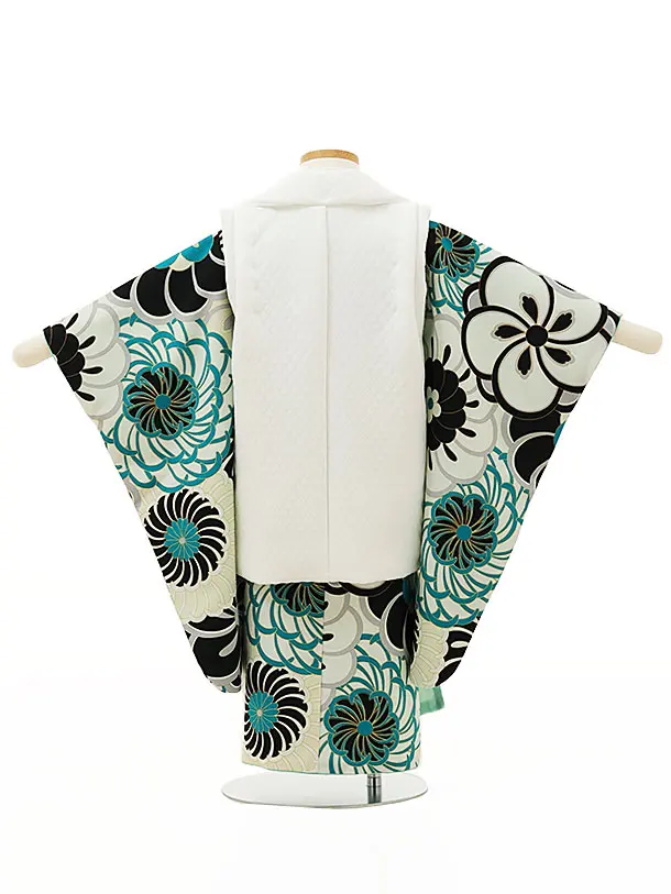 七五三レンタル(3歳男児被布)W040白xクリームねじり梅菊