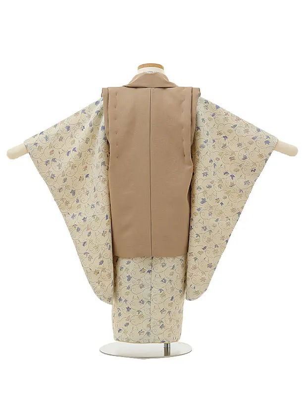 七五三レンタル(3歳男児被布)W045モカブラウンxアイボリー小花