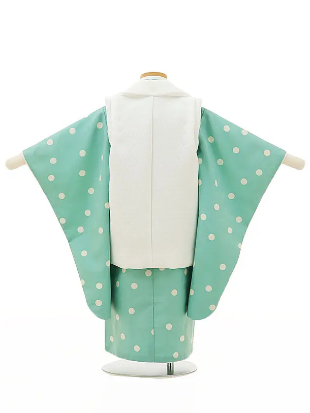 七五三レンタル(3歳男児被布)W046白xミントグリーンドット