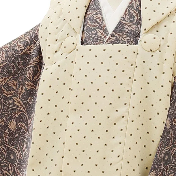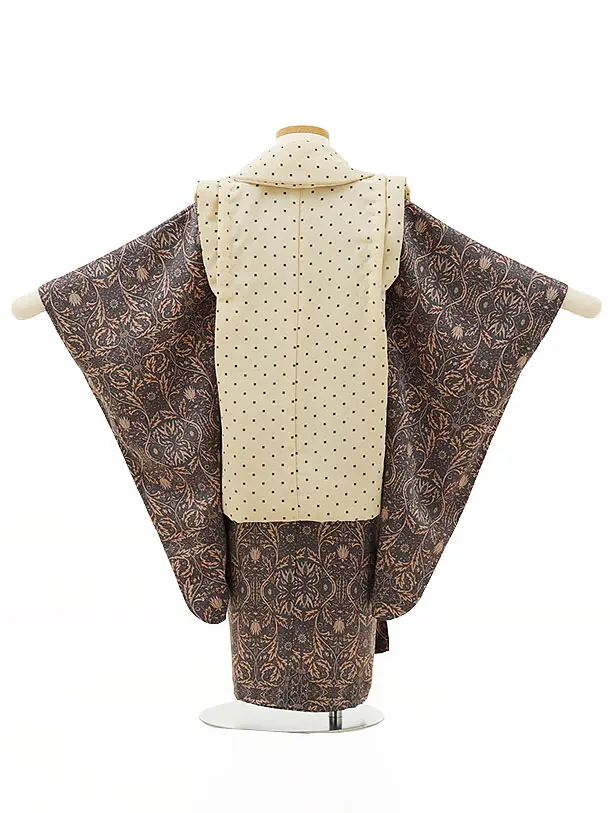 七五三(3歳男児被布)W049花わらべクリームxグリーンパープルダマスクス柄