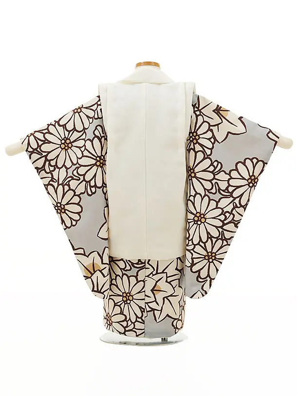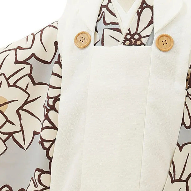 七五三レンタル(3歳男児被布)花わらべW059白xブルーグレー花楓