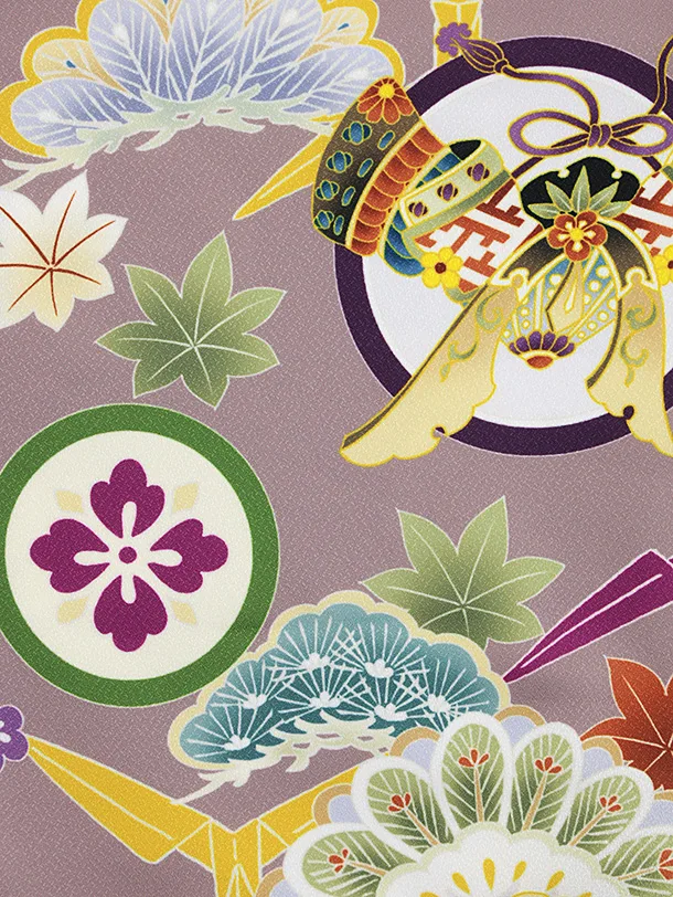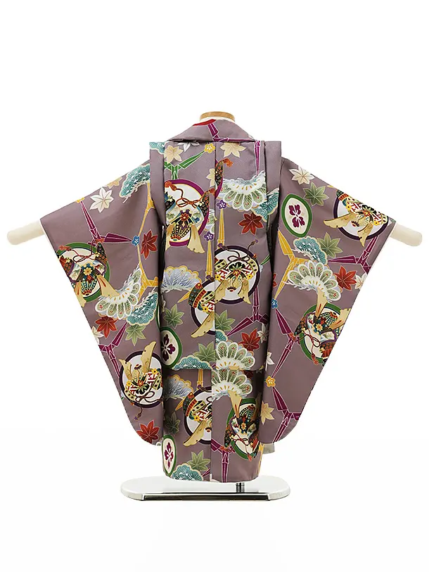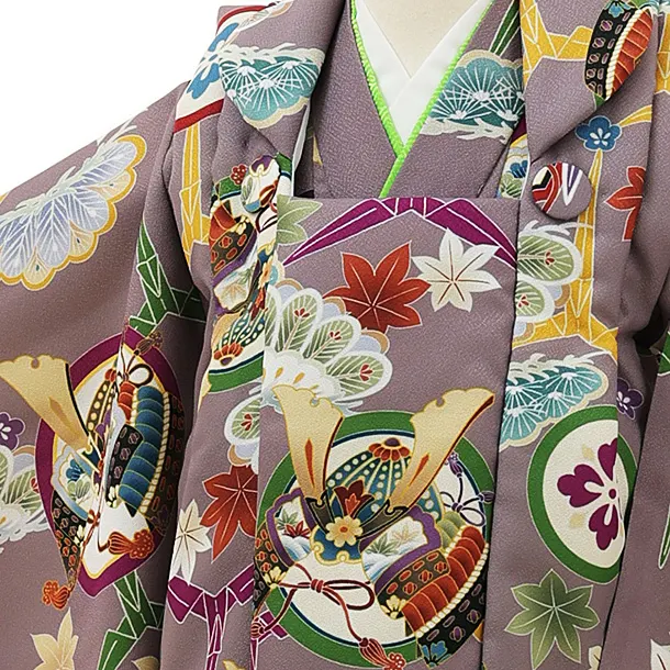 七五三レンタル(3歳男児被布)W061パープルグレー松に丸紋兜