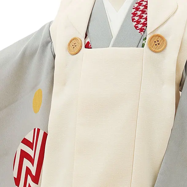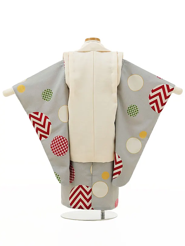 七五三レンタル(3歳男児被布)W064クリーム色xグレー変わりドット